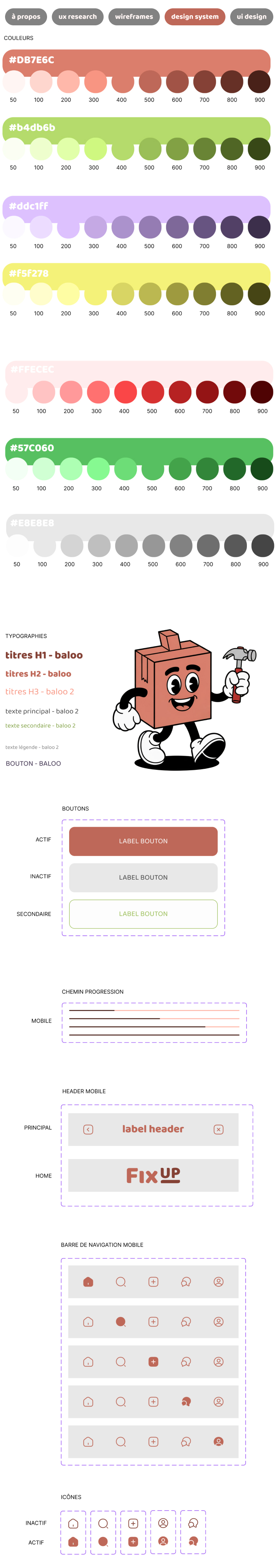 🌟 Les pixels que j’ai imaginés ➛ création du logo et de l’identité de marque ➛ recherche utilisateurs (personae, userflow, map) ➛ création des wireframes ➛ élaboration du design system (couleurs, typographies, composants) ➛ graphisme final de l’interface utilisateur